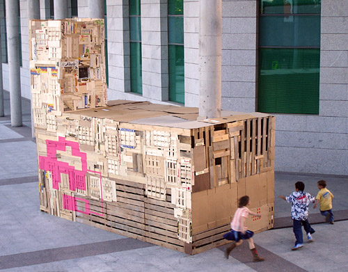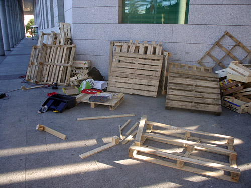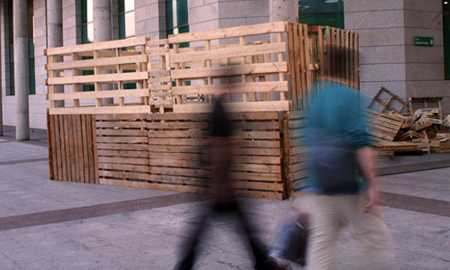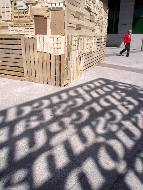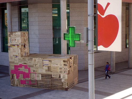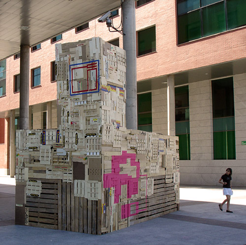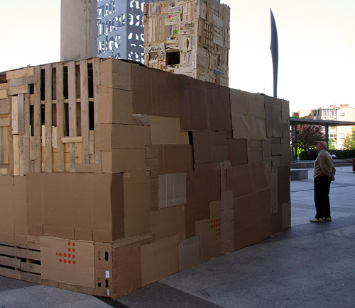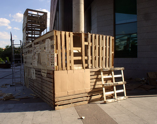 En Alcobendas, proponemos la instalación de una nueva favela que será parte de la serie que empezó con la instalación “Gardenia Azul” en Madrid, “Vidigal” en Berlín y “Morro dos Macacos” en Arco 07. La diferencia formal entre unas y otras viene determinada por el espacio en el que se desarrolla y por el material de desecho encontrado en la calle de cada ciudad. Esta vez, en vez de fabricarla en un espacio expositivo, como las anteriores, la instalaremos en la plaza del ayuntamiento de Alcobendas, donde el contraste con la arquitectura moderna, la limpieza de la plaza y el hecho que sea la sede del ayuntamiento dará a la instalación un aspecto más reivindicativo además de invitar el público a una reflexión social.